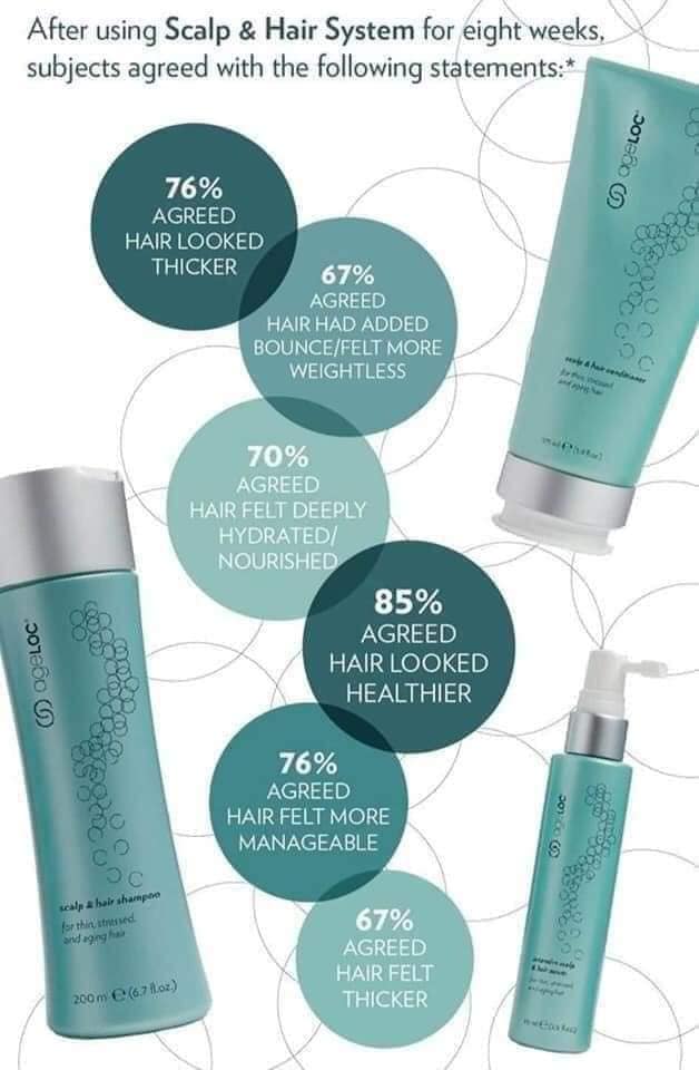 • ageLOC Proprietary Blend for Scalp—Targets the sources of aging scalp for more revitalized looking hair.