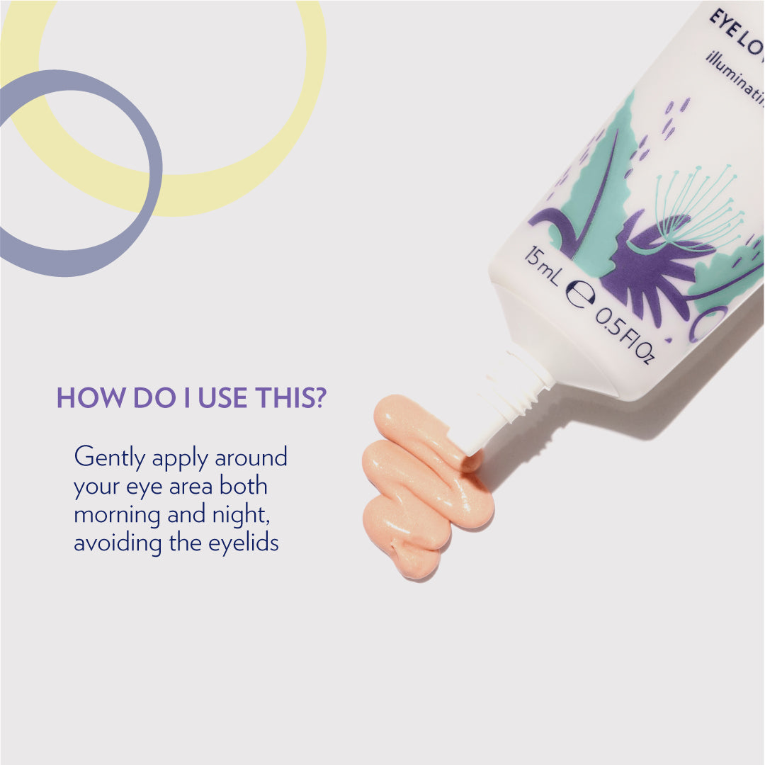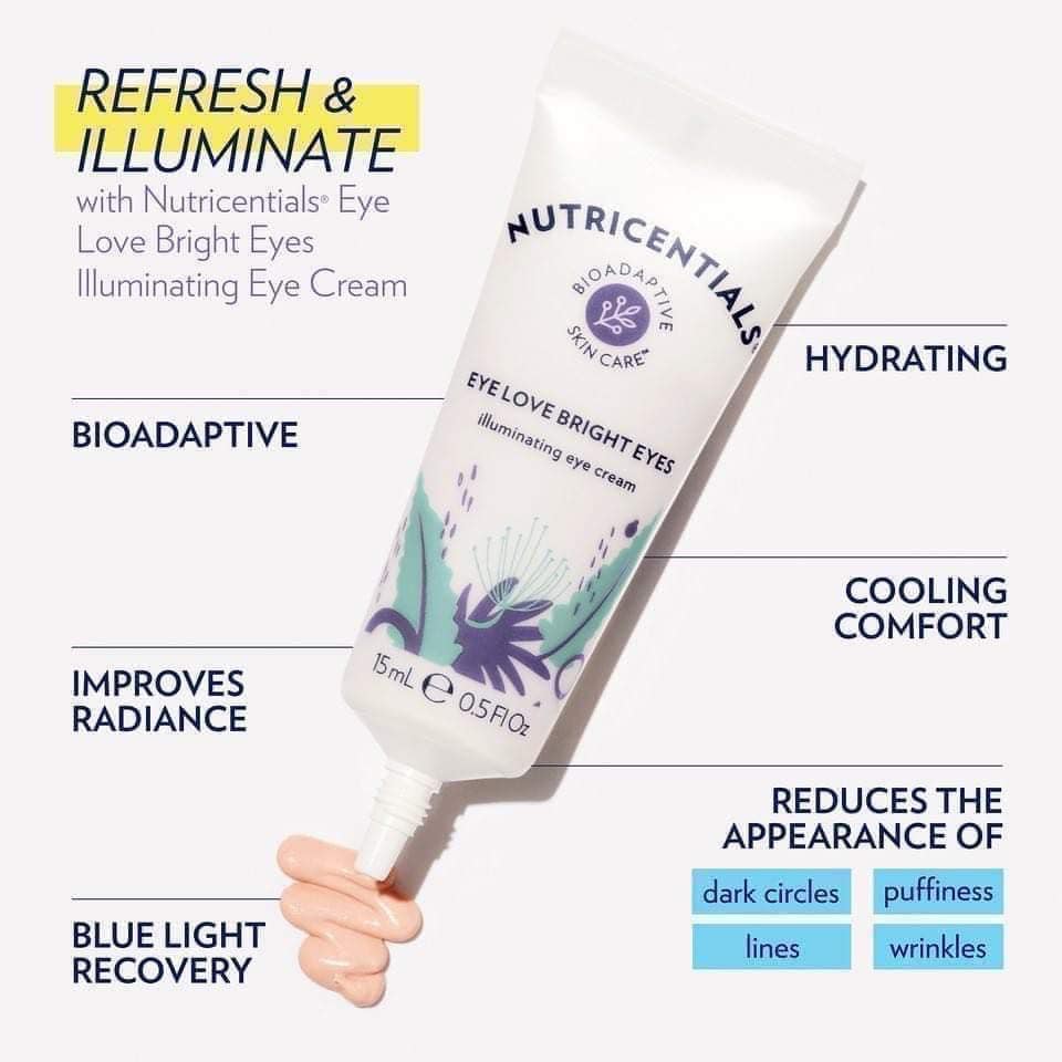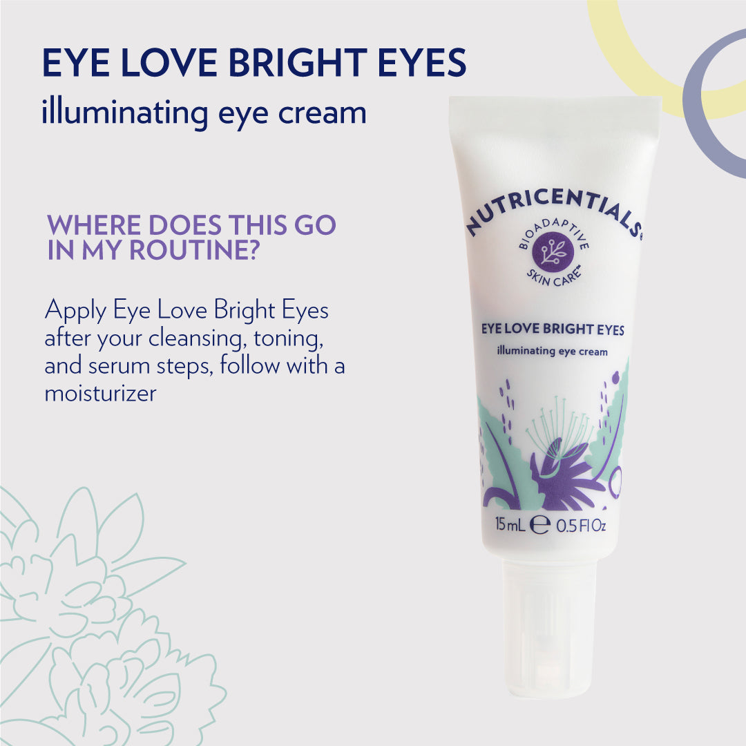 Eye Love Bright Eyes Illuminating Eye Cream is a lightweight, creamy formula made with Roundhead Bush Clover to help improve radiance and reduce the appearance of dull, uneven, stressed, and tired skin caused by blue light exposure. At the same time, Apple Extract helps skin look and feel hydrated all day long.