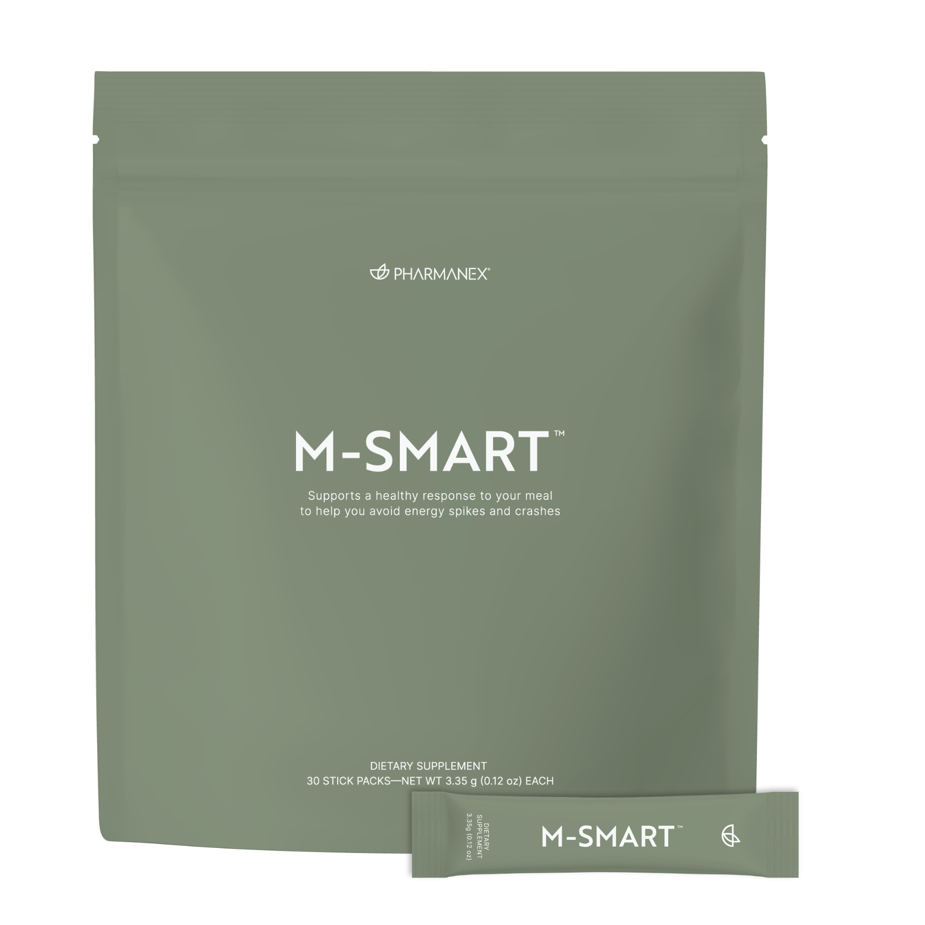 Tired of post-meal energy crashes and sugar cravings? Meet M-Smart. This smart, science-backed supplement is designed to support healthy blood glucose levels*-so you can stay energized and in control after every meal. M-Smart works with your body to help minimize glucose spikes, which means fewer crashes and more stable energy.* Formulated with well-tolerated fiber and plant-powered ingredients, M-Smart supports your body's natural ability to respond to carbohydrates-helping promote balanced energy levels after meals.* M-Smart helps you feel fuller for longer and encourages long-term balance, not just quick fixes. That means reduced cravings and less temptation to reach for snacks.* That's the smart way to take control.